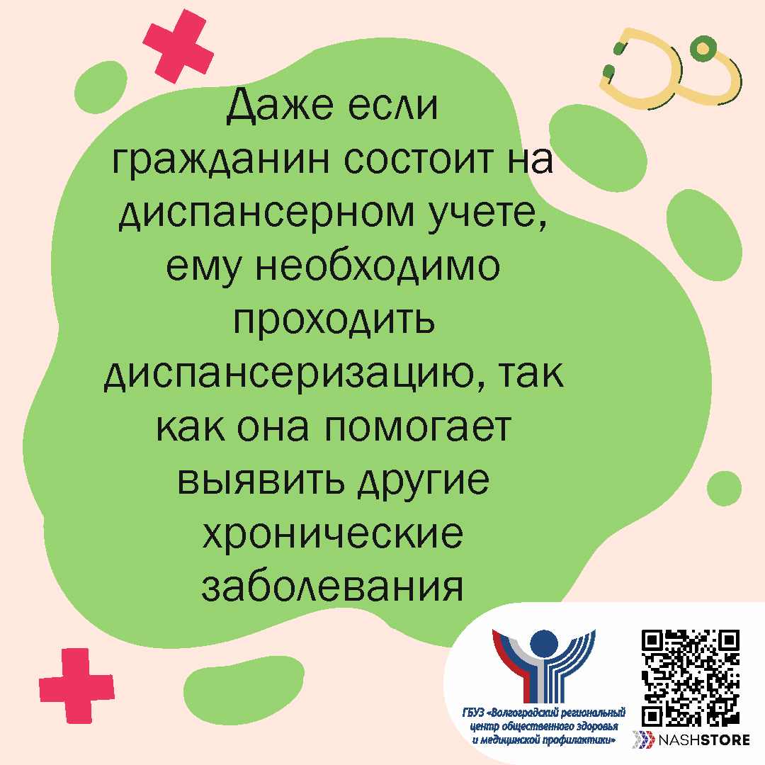 Ответственное отношение к своему здоровью поможет не только улучшить качество жизни, но и позволит увеличить продолжительность жизни. Проверить свое здоровье можно с помощью профилактических осмотров и диспансеризации, которые помогают предотвратить развитие заболеваний, а также диагностировать заболевания на ранней стадии для скорейшего начала их лечения. Даже если гражданин состоит на диспансерном учете, ему необходимо проходить диспансеризацию, т.к. она поможет выявить другие ХНИЗ.