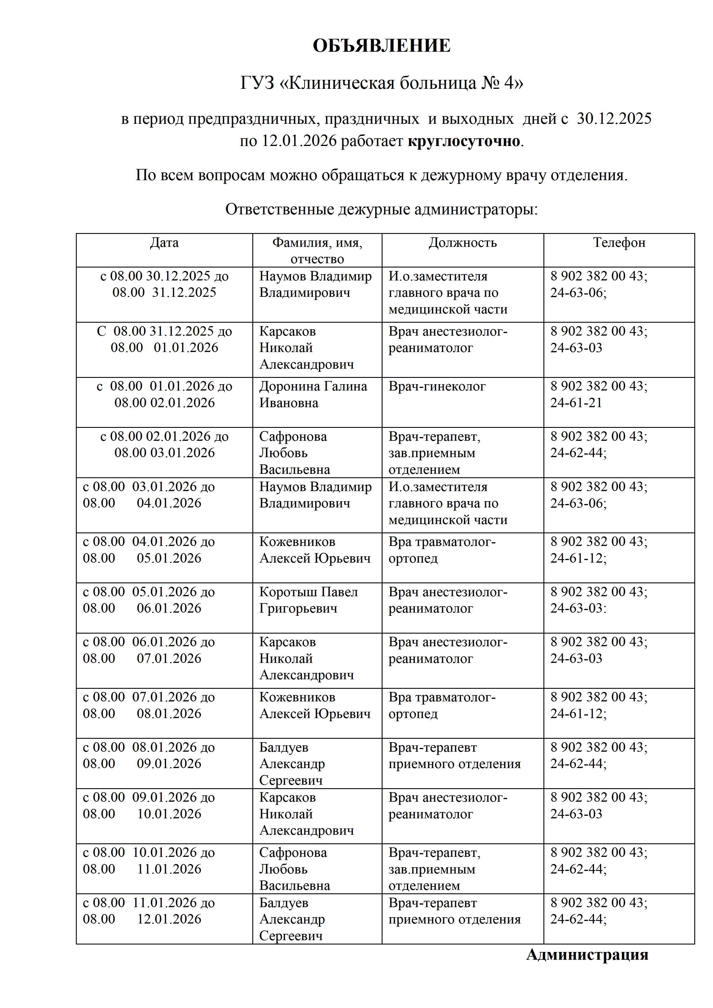 Работа учреждения в период предпраздничных, праздничных и выходных дней с 30 декабря 2025 года по 12 января 2026 года