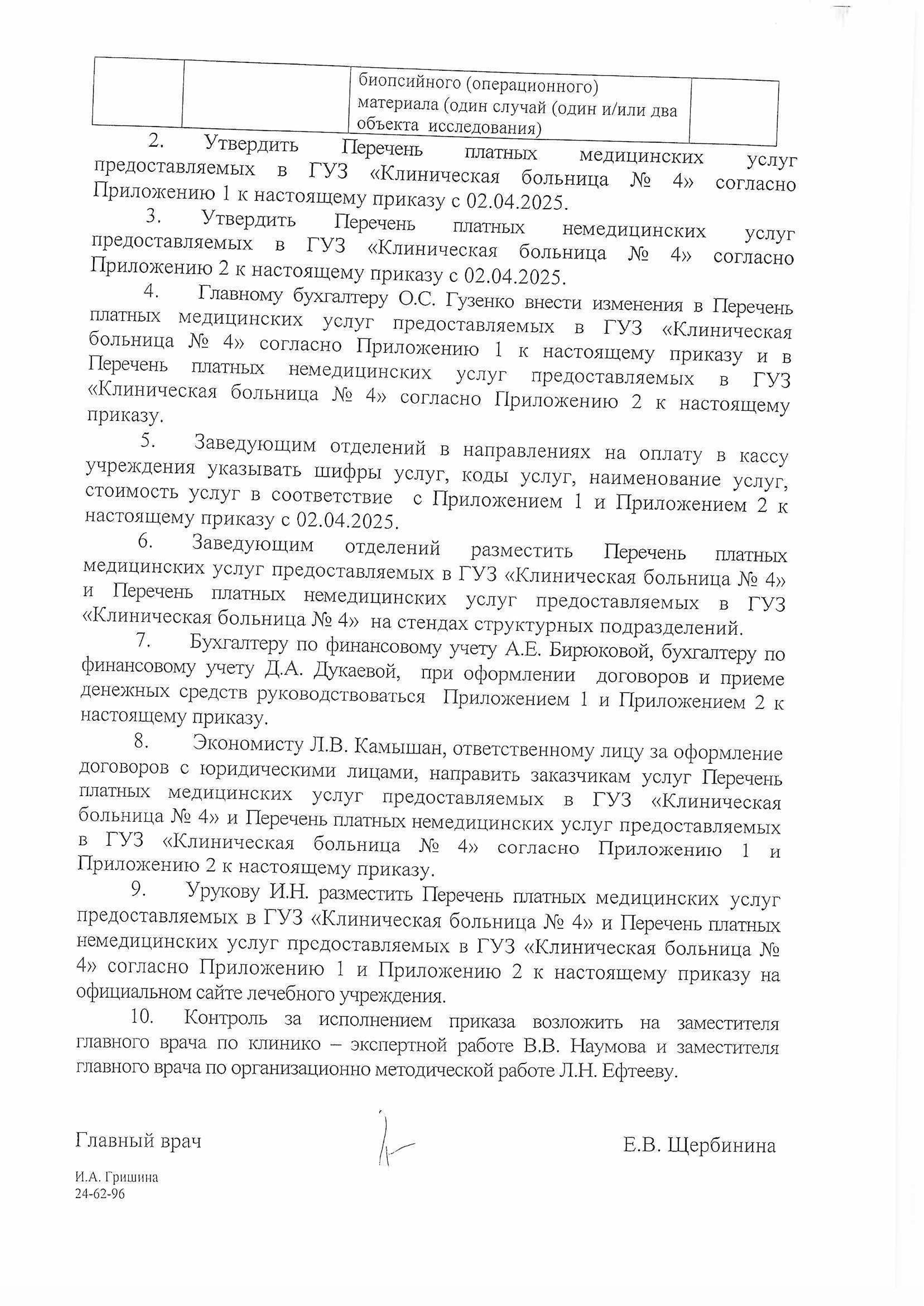 Приказ от 05.09.2025 № 233 «Об утверждении перечня платных медицинских услуг, предоставляемых в ГУЗ «Клиническая больница № 4» на платной основе для льготной категории граждан»
